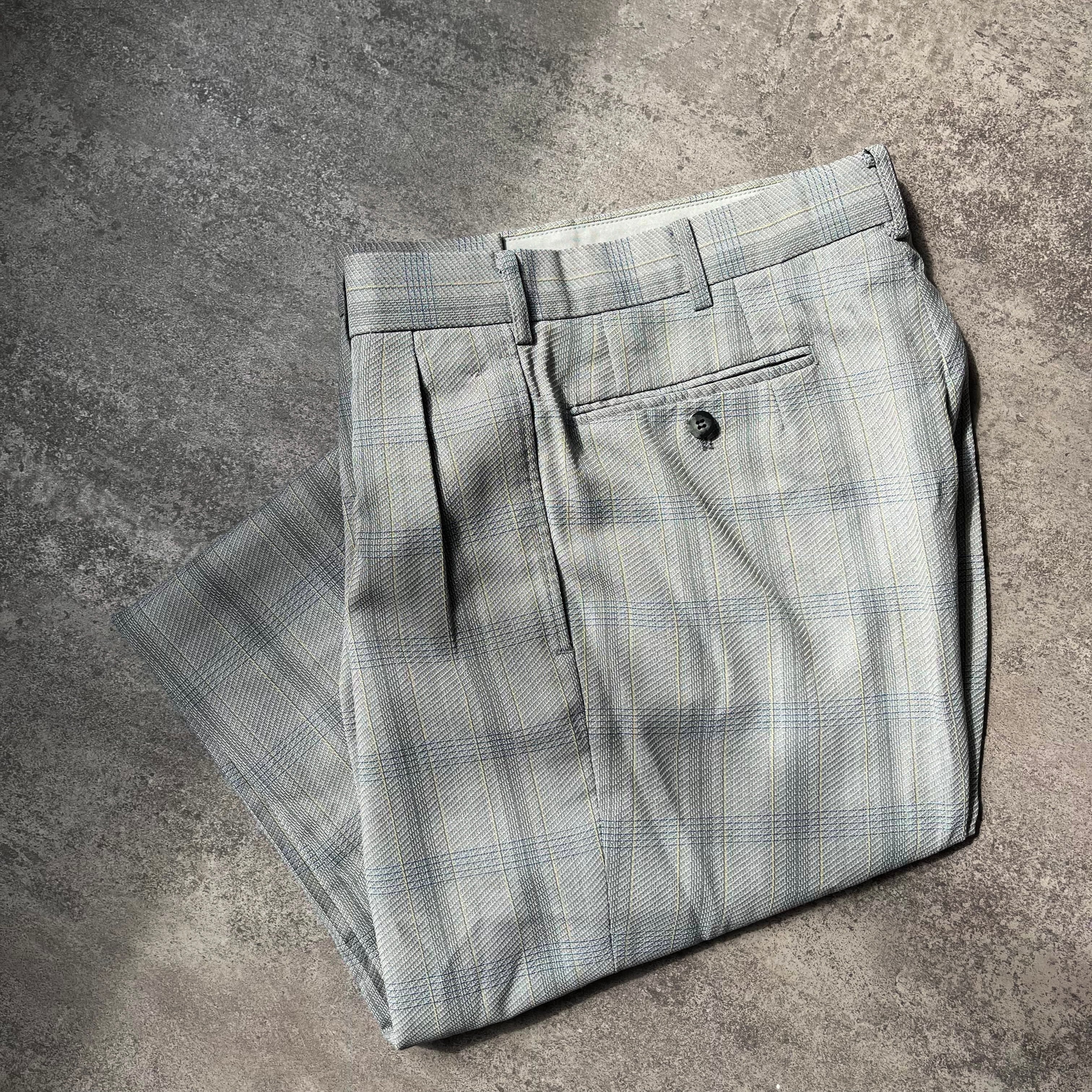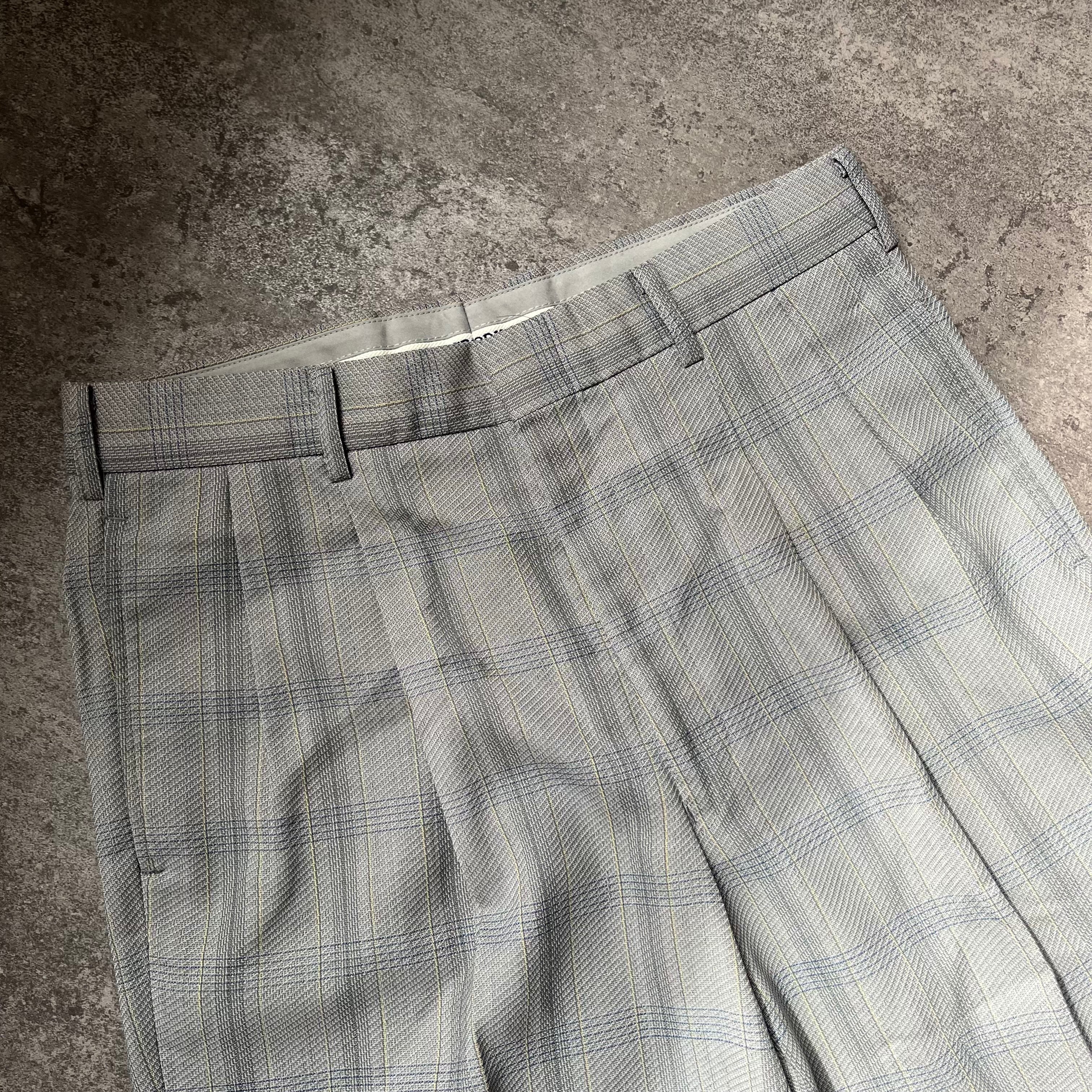 vintage 2tuck check wide single slacks